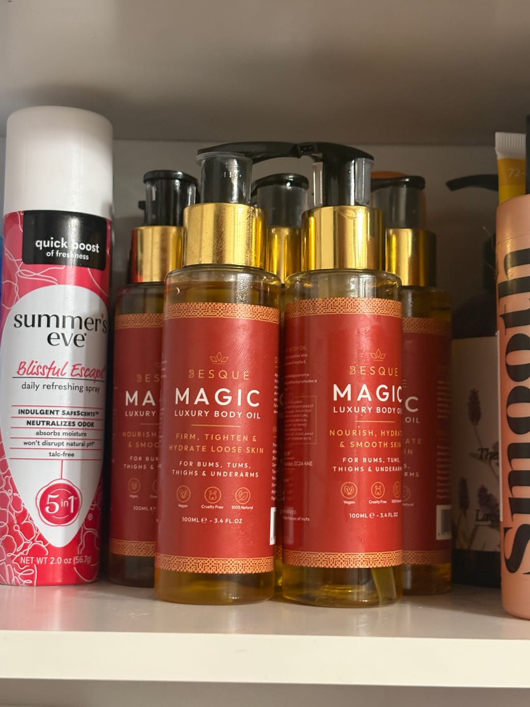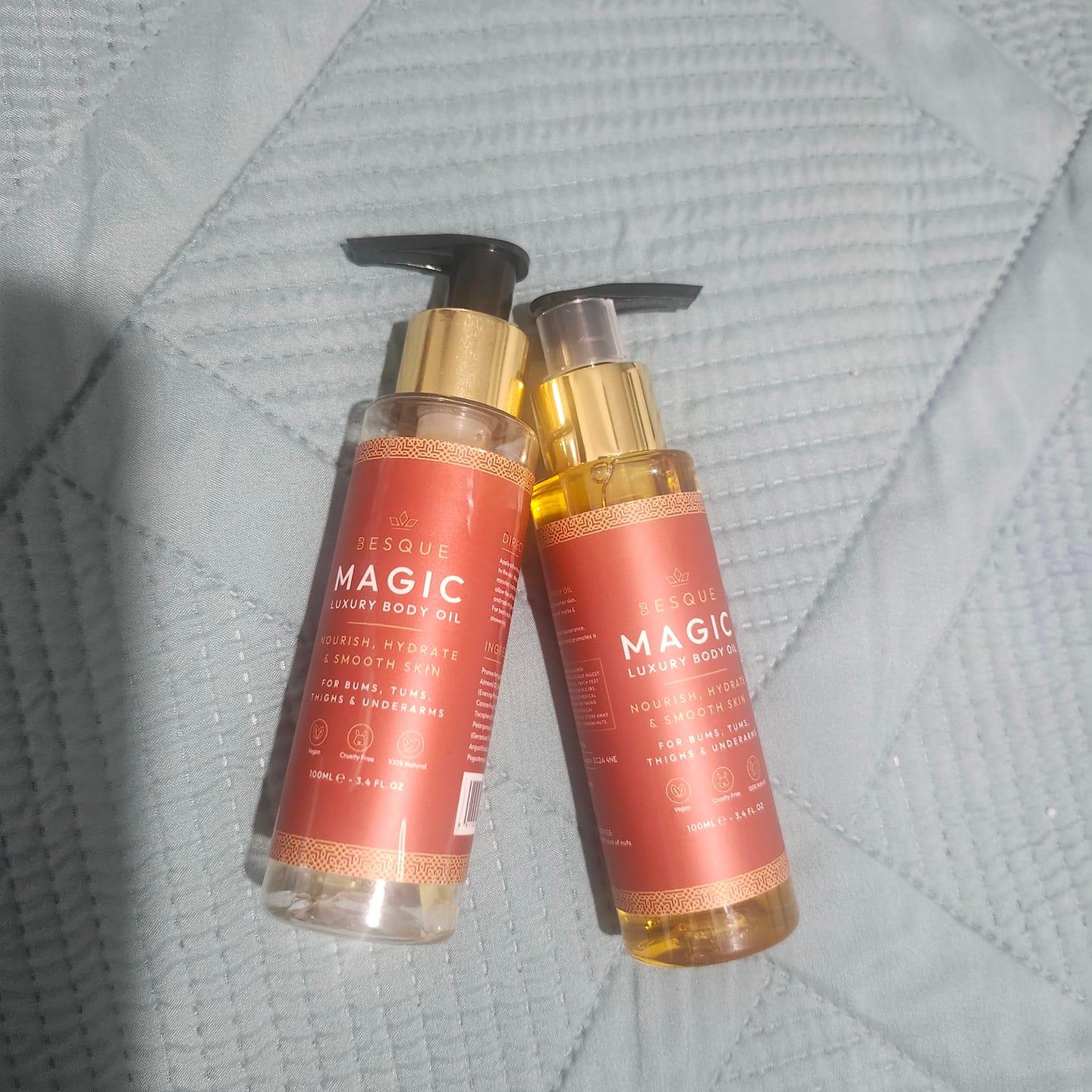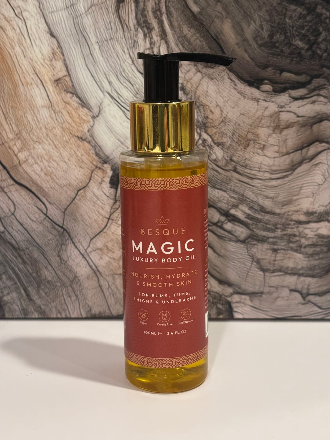 Our Luxury Magic Body Oil is your secret weapon for achieving the smooth, toned, and radiant skin you've always dreamed of. Packed with powerful natural ingredients likePatchouli, Rosehip and Geranium this silky elixir deeply nourishes, firms, and rejuvenates, helping you rediscover your most confident, sexy self at any age.
